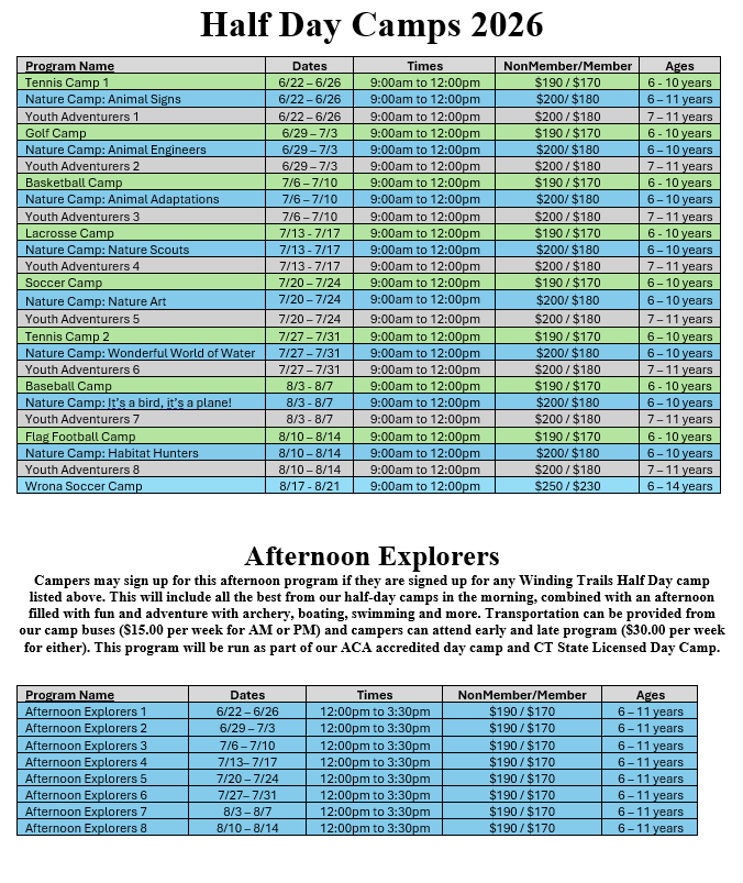 REGISTRATION FOR HALF-DAY CAMPS WILL OPEN ON MONDAY, FEBRUARY 9TH